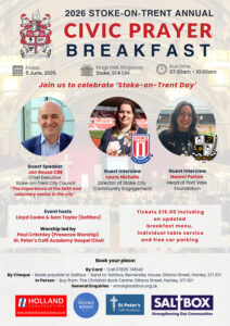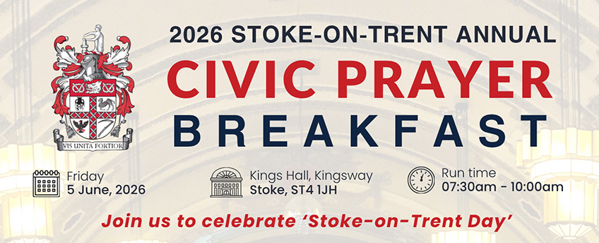 Join us for the 2026 Stoke-on-Trent Civic Prayer Breakfast, taking place at Kings Hall, Stoke, ST4 1JH, on Friday 5th June.